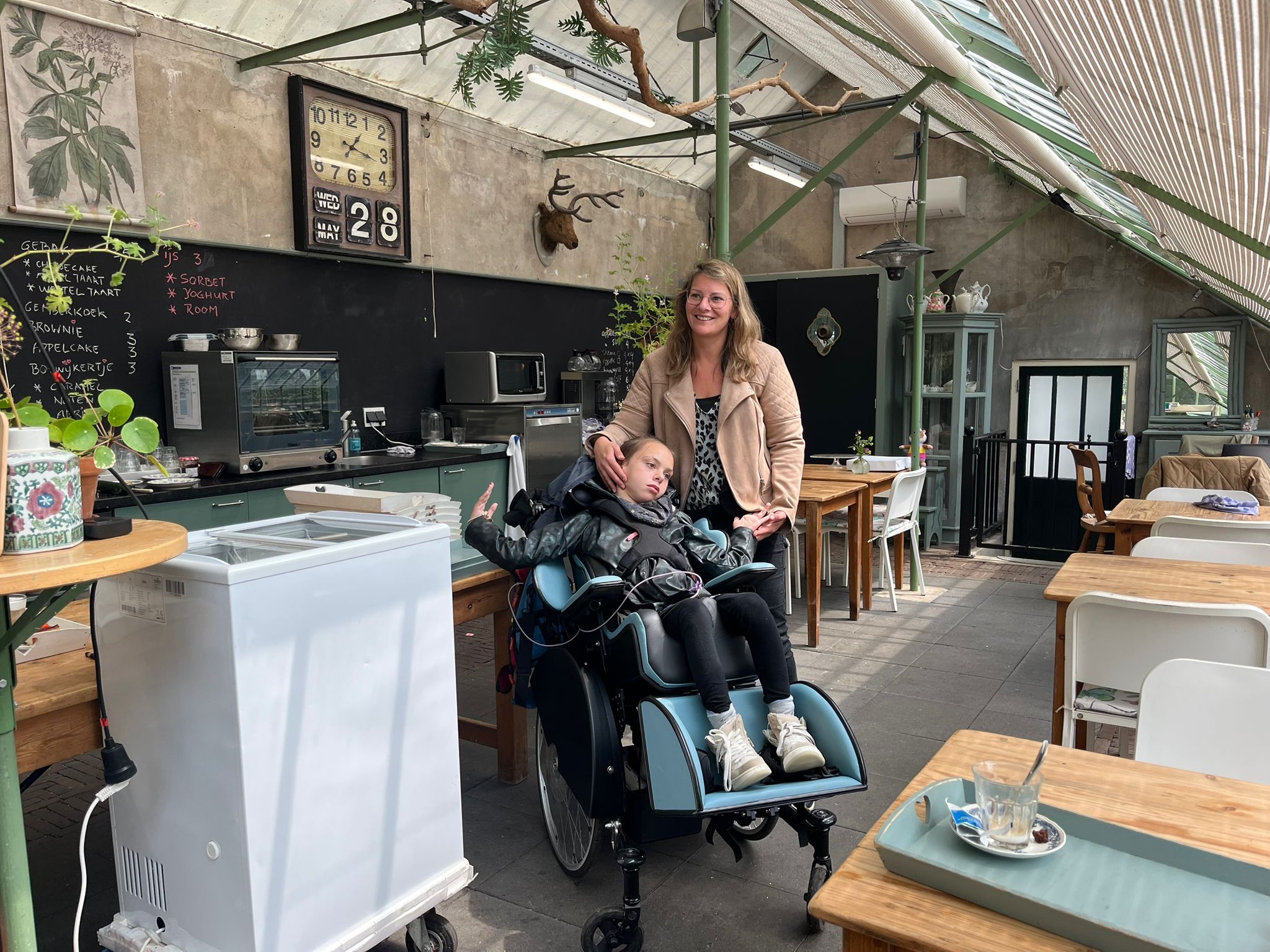 “Dat ik nu een plek voor mezelf heb is ontzettend fijn. Ik woon nu in Maarn, Milou en Thijs zijn de helft van de week bij mij en de andere helft van de week bij hun vader. Doordat we de zorg zelf regelen met een pgb, kan Milou thuis blijven wonen. Ze gaat nu op maandag, dinsdag, donderdag en vrijdag naar de Bosschool bij Bartiméus en we hebben een team van tien zorgverleners die samen met ons de zorg voor Milou dragen. Dat is, zeker in combinatie met alle ziekenhuisafspraken, afspraken met zorgverleners en het regelen van hulpmiddelen, bijna een business erbij.”